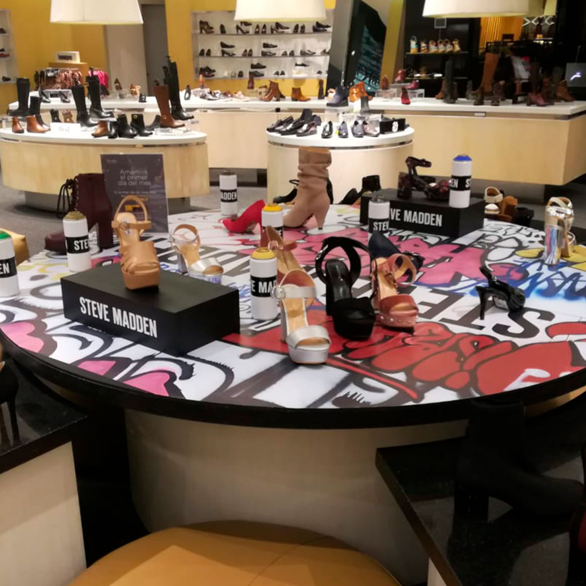 Proyección creativa basada en campañas globales de la marca, con el objetivo de crear impacto en Visual Merchandising en tiendas departamentales y de la marca. Con evaluación de materiales de producción y montaje de acuerdo a budget brindado por cliente.